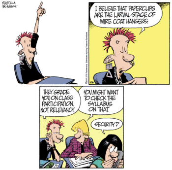 You do warm ups in my class and you get an automatic A. This can lead to interesting responses. All the reason why I found this Zits cartoon funny.
